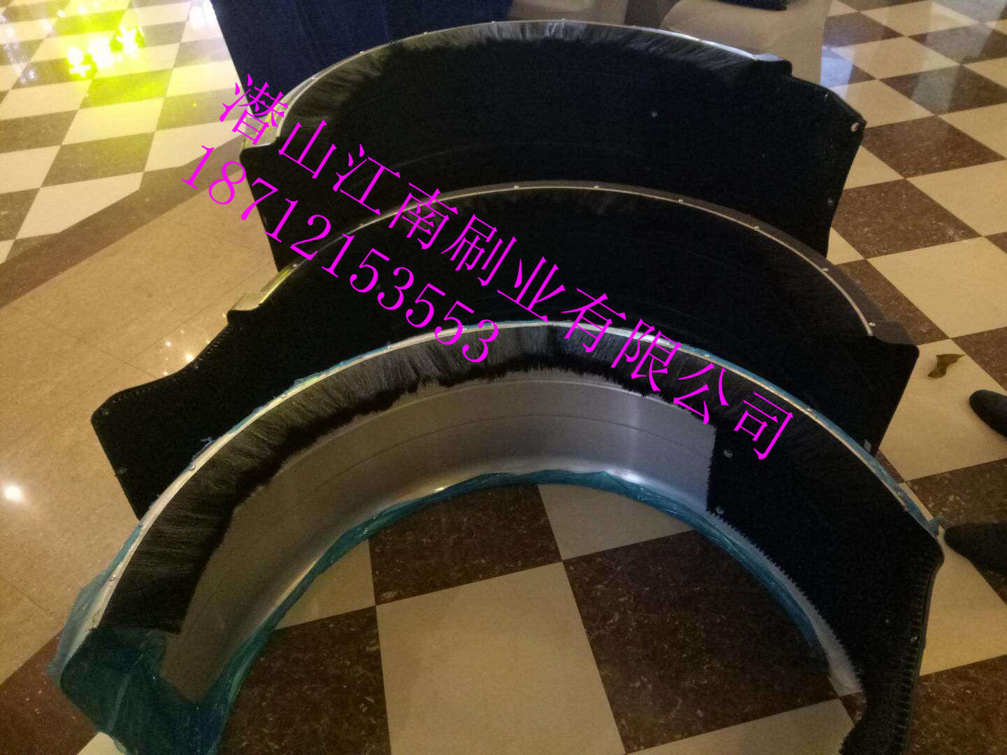 中國(guó)隨著各行業(yè)的發(fā)展。道路,修橋,水庫(kù),建筑等不斷發(fā)展離不開(kāi)沙子,石子等材料但是這些材料需要運(yùn)輸;在運(yùn)輸過(guò)程中,貨車的行駛速度快肯定會(huì)有很多沙子或者石子四處飛濺;嚴(yán)重影響道路倆邊的行人,過(guò)往車輛,最嚴(yán)重的是公路倆邊的住戶;有時(shí)候飛濺出來(lái)的石子把倆邊的住戶玻璃門上戶玻璃上玻璃忽然了;嚇的人半死;一直有很戶反映到政府;政府反映到上面;很是頭疼的事;住戶說(shuō)的有道理;但是隨這各行業(yè)的發(fā)展也不能說(shuō)貨車不運(yùn)輸也不可能;就為此事;引起好多糾紛;道路倆邊的住戶擋路攔車等;在華南地區(qū)開(kāi)始執(zhí)行方案;我廠接到華南地區(qū)領(lǐng)導(dǎo)電話;在我們共同努力下想出了;防飛濺毛刷條;經(jīng)過(guò)多次實(shí)驗(yàn);現(xiàn)已經(jīng)成功實(shí)施;此毛刷條根據(jù)貨車輪抬定制;一般常用的是半圓1169mm-1259mm中間尺寸都可以定制;防飛濺毛刷分為三種材質(zhì);一;不銹鋼帶夾制而成厚度8*8-10*10倆種;不銹鋼帶夾制成條刷;再使用折彎?rùn)C(jī)折成所要的尺寸;固定點(diǎn)使用304不銹鋼片焊接;刷絲采用尼龍波紋0.5-0.8二;鍍鋅鐵帶夾制而成厚度8*8-10*10倆種;不銹鋼帶夾制成條刷;再使用折彎?rùn)C(jī)折成所要的尺寸;固定點(diǎn)使用鍍鋅鐵片焊接;刷絲采用PP波紋;0.4-0.7;三;鋁合金材質(zhì)折彎厚度8*8-10*10倆種;不銹鋼帶夾制成條刷;再使用折彎?rùn)C(jī)折成所要的尺寸;固定點(diǎn)使用鍍鋅焊。