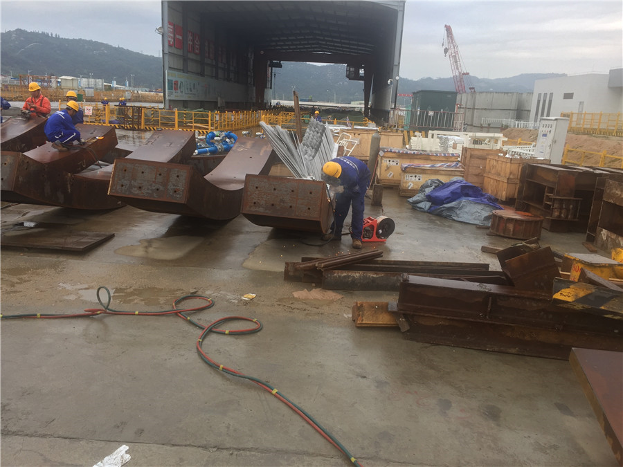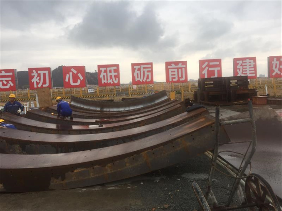 利用管片安裝機將事先準備好的長度800mm的16個撐墊安放于管片與推進油缸之間,手動將每個油缸都抵緊撐墊,利用推進油缸向前頂推盾構掘進700mm,此時露出兩道盾尾刷; 露出兩道盾尾刷示意圖 16個撐墊布置示意圖 (4)移動并伸出管片安裝機抓舉頭,將點位①處的撐墊固定在安裝機上,縮回點位①處的推進油缸,拆除點位①的撐墊,同理拆除點位②的撐墊; (5)將密封刷及溝槽上的油脂、砂漿等干凈,再開始割除尾刷。然后將尾刷割除的***打磨平整,再開始焊接新的密封刷。焊完后,在新密封刷上涂抹盾尾密封油脂; (6)利用管片安裝機安裝點位處的撐墊,將點位①和②處的推進油缸將點位①和②處的撐墊頂緊,然后拆除點位③和④處的撐墊; (7)重復步驟(5),更換新的密封刷,然后按照上述步驟順次更換其余密封刷(每次只拆除相鄰兩個點位的撐墊) 盾尾密封刷技術標準 1、保護板采用SAE1566彈簧鋼,前保護板為雙層,1.0加0.5,后保護板為2片1.0加強型,采用特殊工藝(專用壓模)熱處理HRC45-47.確保彈性和耐磨性, 鋼絲刷刷絲采用¢0.3直徑不銹鋼絲,確保彈性,不生銹、不斷裂。 2、銷釘采用低碳鋼(Q345),確保焊接性能和耐磨。 3、尾刷中間絲網(wǎng)采用40目高密度不銹鋼材質。 4、上蓋板,底座板,采用Q235。 5、總裝采用專用工夾具和20T專用液壓機疊加擠壓工藝進行總裝 6、焊接工藝采用專用二氧化碳氣體保護焊接. 7、成品保護板熱處理后,,抽檢不低于10%采用20T液壓機連續(xù)500次沖壓確保產(chǎn)品變形度小于2.5度 8、組裝后的盾尾刷其鋼絲應有雙曲且整齊無亂絲,斷絲,鋼板光滑無毛邊,兩側面平整無細絲外露,產(chǎn)品表面做防銹處理,每個成品凈重控制在正負0.1公斤。